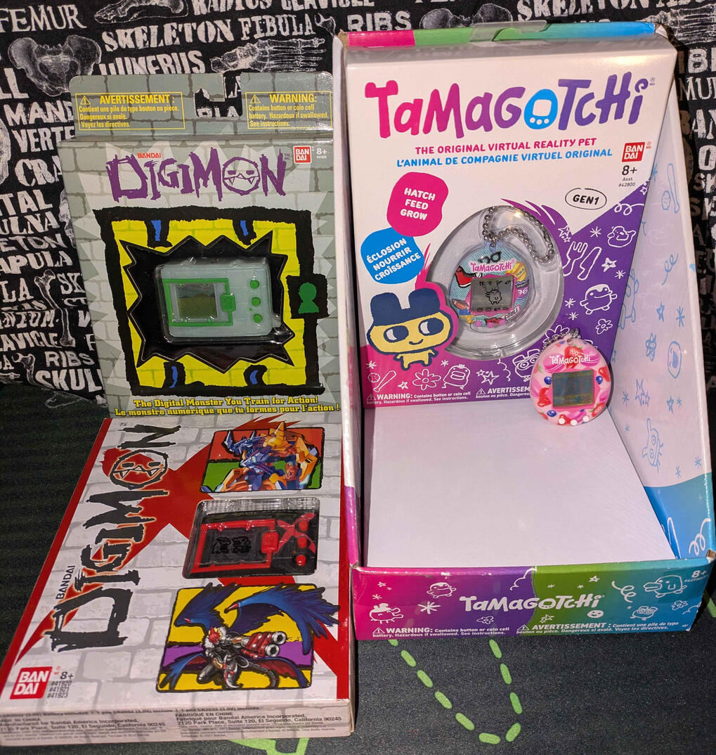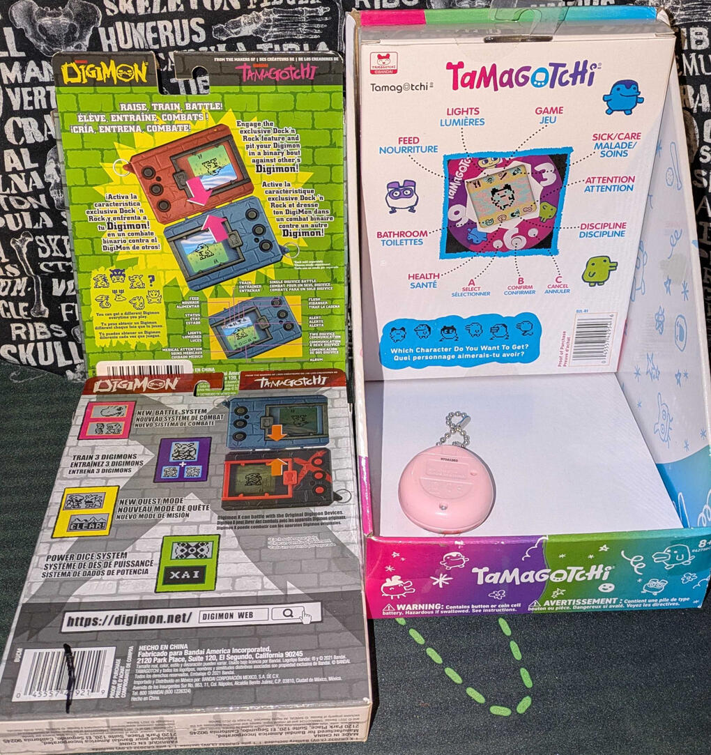 Digimon 20th and the loose Tamagotchi have been used previously, unknown if the manual is in the Digimon 20th box but can check before shipping.Can include display box for any of them but it will increase shipping costs.