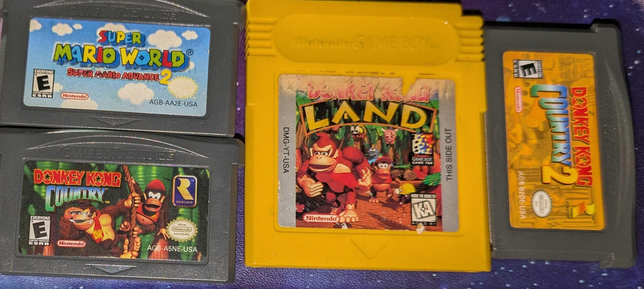 Super Mario Advance 2 $12 | Donkey Kong Country $8 | Donkey Kong Country 2 $12 | Donkey Kong Land $5 | Switch Games $20 each | Shrek $3
