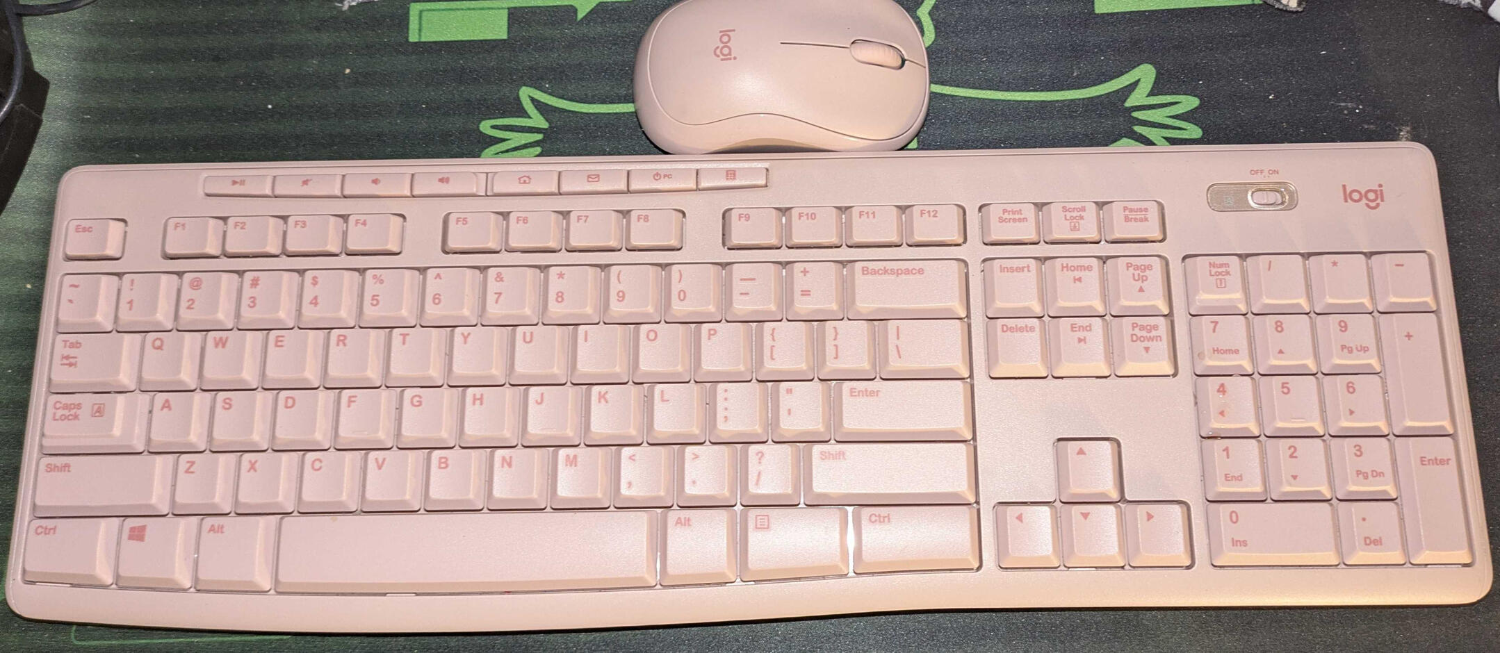 May have some dust/dirt between the keys but it is lightly used. Dongle is in the battery compartment of the mouse.